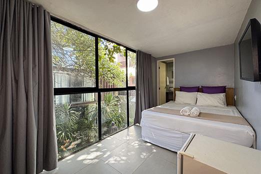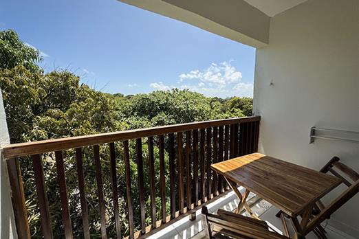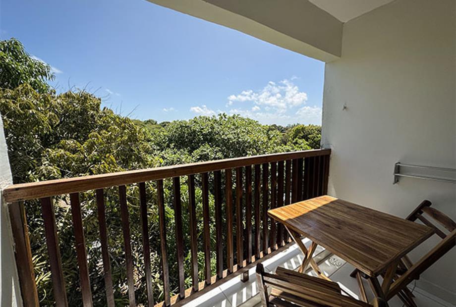 Esse é uma ótima opção para quem busca conforto e simplicidade. Fica no terceiro andar, com uma sacada que tem uma vista charmosa para o jar...