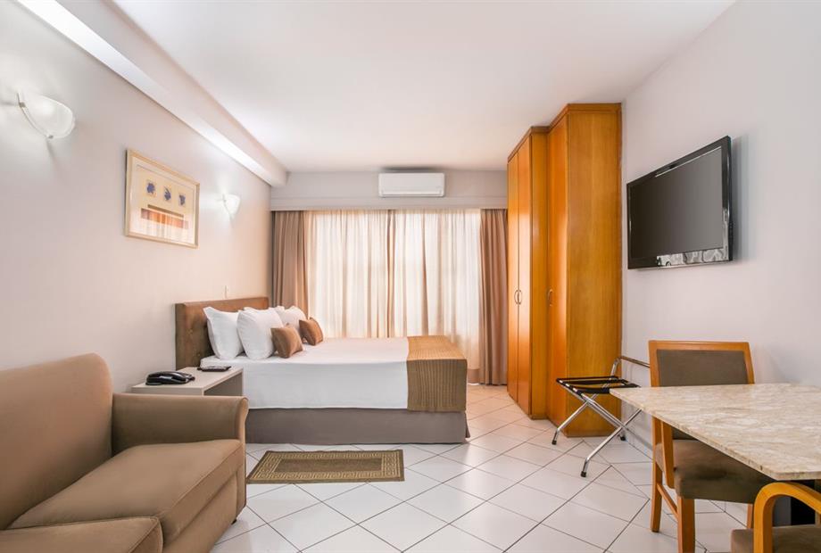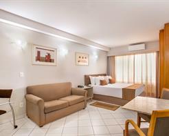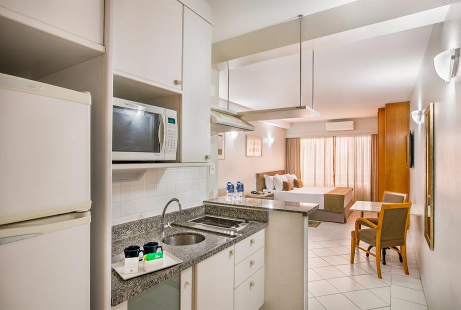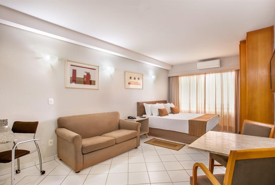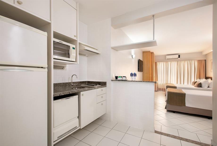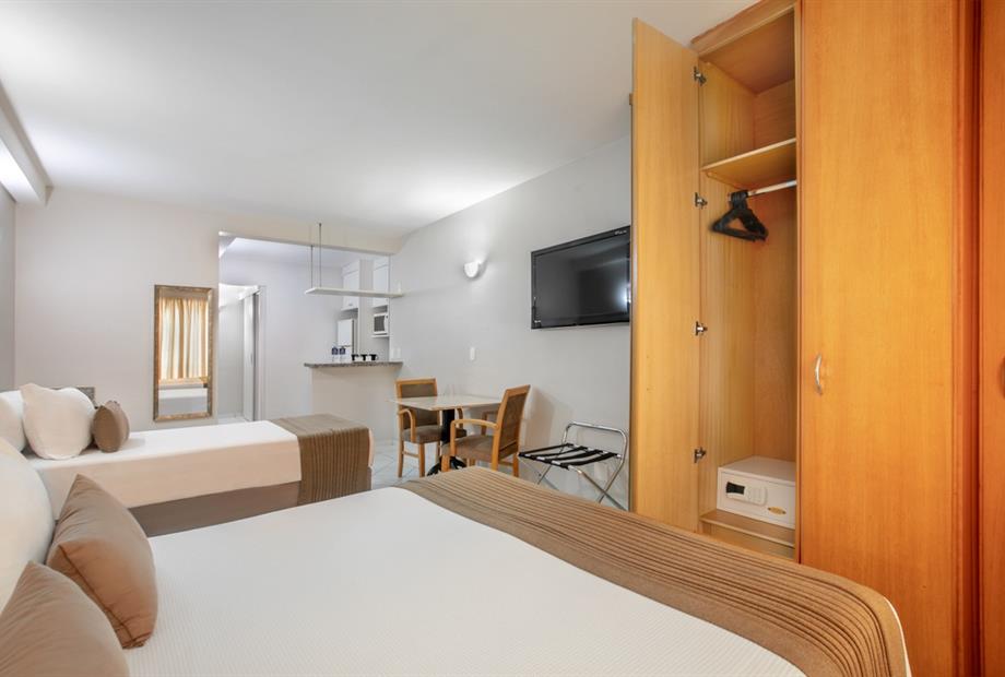 Máx.Quarto tipo LOFT com uma cama de casal tipo Queen Size, cozinha equipada, banheiro privativo, telefone, frigobar, fechadura eletrônica, cofr... (ver mais)