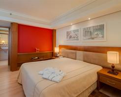 Máx.Suíte confortável de 41 m² localizado no 8º andar com uma cama casal king size, banheira de hidromassagem, roupão de banho e chinelos para u... (ver mais)