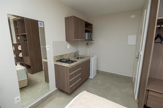 Este apartamento dispõe de ar-condicionado, TV de tela plana a cabo, frigobar e banheiro privativo. Inclui móveis modernos. Para a sua maior comodidade, oferecemos o Wi-Fi gratuitamente. Todas as acomodações estão equipadas com: cooktop, micro ondas, frigobar e 1 cama de casal e 1 de solteiro ( ou 3 de solteiro) e mesa de trabalho.