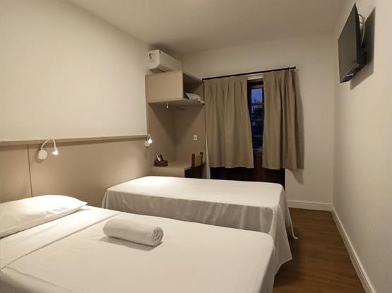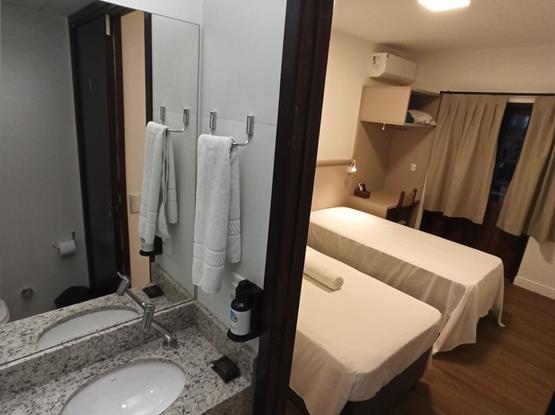 Ar-condicionado · TV Smart · Frigobar · Wi-Fi · Cofre · Armário · Bancada