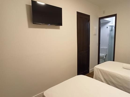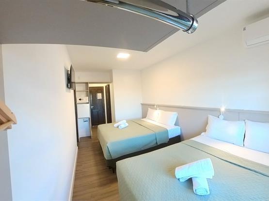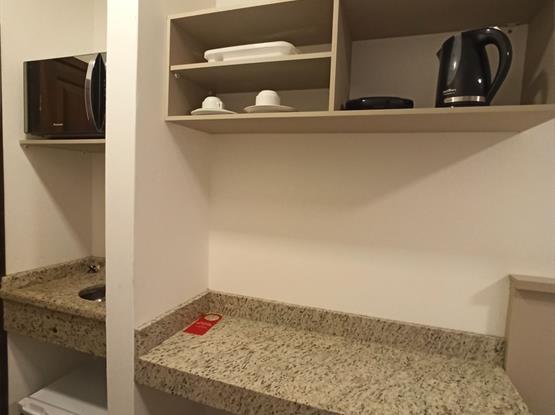 Sacada privativa · Minicozinha equipada (pia, micro-ondas, torradeira, chaleira elétrica, utensílios básicos)