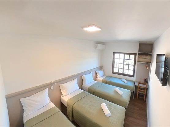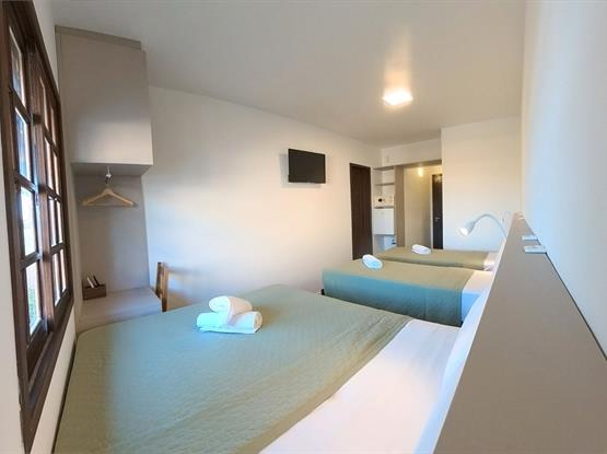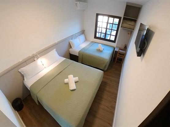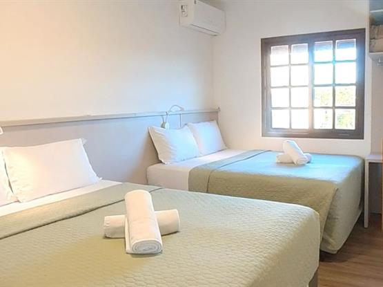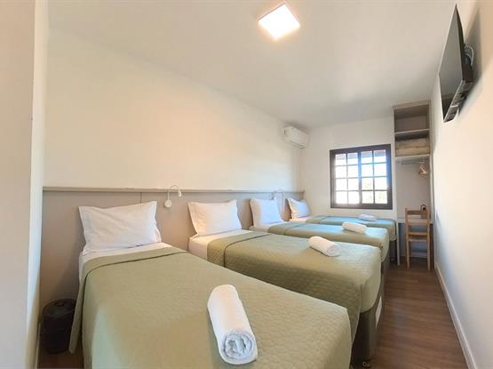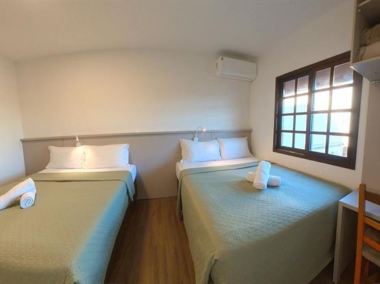 Acomoda até 7 pessoas · Camas de casal + camas de solteiro (ou camas auxiliares baixas, conforme disponibilidade).