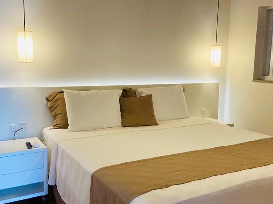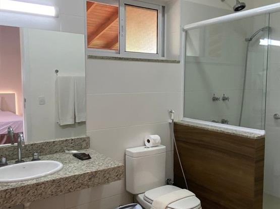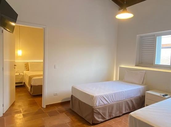 Nosso Chalé Premium foi preparado para que todos pudessem ficar juntos e bem acomodados. Contamos com dois quartos, um banheiro, um closet e uma varanda (não possui rede na varanda). Com uma vista linda do nosso lago e piscina, perfeito para quem viaja com crianças. Esse apartamento acomoda até 5 pessoas sendo uma cama casal e três camas solteiro.
