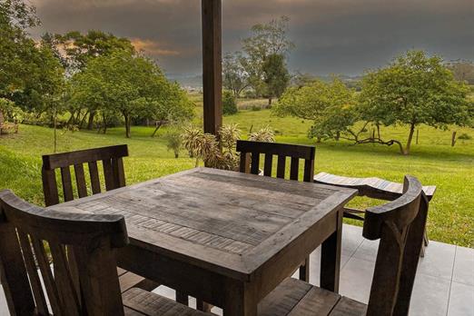 No caminho dos bangalôs o hóspede passa por um pergolado onde as amoreiras descansam seus galhos. Entre Outubro e Novembro é possível se deliciar com essa fruta. Além disso, tem as goiabeiras que cercam o bangalô. Elas frutificam nos meses de Março e Abril.