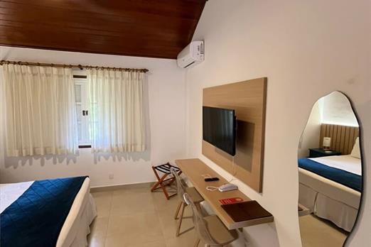 Acomodações projetadas para comportar até 2 pessoas em uma cama de casal, com TV a cabo, ar-condicionado, cofre digital, secador de cabelos, telefone, minibar, roupas de cama e banho, amenities, banheiro, chuveiro com água quente e ducha higiênica. Vista parcial para o mar ou interna para a pousada (mediante a disponibilidade no check-in) e estão localizadas no andar térreo e primeiro andar. Área: 18m². A voltagem nas acomodações é de 110v.