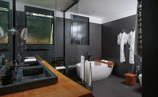 As duas saunas, seca e úmida, possuem visão da área da piscina principal por meio de amplos panos de vidro. Fazem parte da estrutura também vestiários e chuveiros, trazendo conforto e praticidade para os nossos hóspedes.