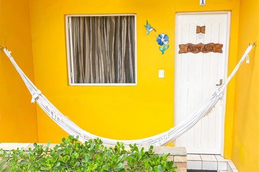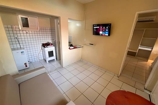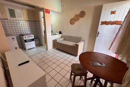 FLAT com sala, 1 cama de casal e 1 beliche, frigobar, fogão, jogo de panelas, TV de 32' , Ar condicionado, Armário , Wi-Fi, 1 mesa com 4 cadeiras, enxoval completo contendo: lençol, manta, 4 travesseiros, fronha, toalha de banho, toalha de rosto, toalha de piso, sabonete, papel higiênico, e Banheiro privativo com Box de vidro e chuveiro quente.