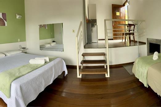 Situados na área superior do complexo, são charmosos chalés totalmente independentes, com vista panorâmica para toda a Pousada, cama de casal Queen + 1 ou 2 camas de solteiro, hall com mini copa, sofá, 1 banheiro com hidromassagem, lareira, varanda com vista panorâmica, 1 ar condicionado para seu conforto em qualquer época do ano, 1 TVs LCD a cabo, frigobar, telefone, secador de cabelo, amenidades...