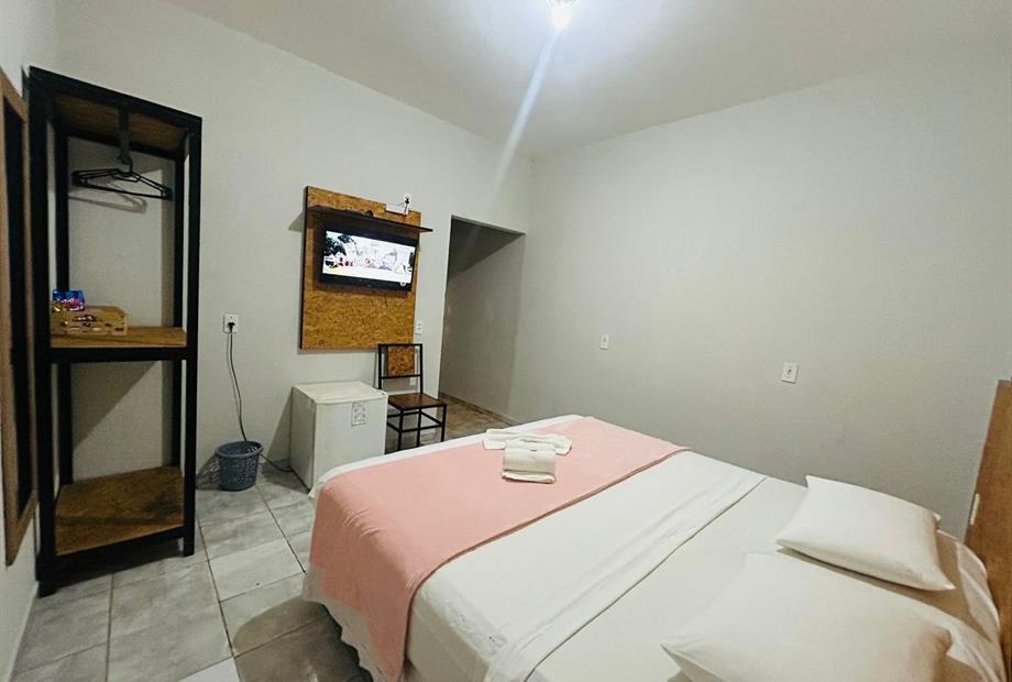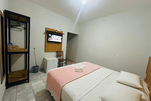 Conveniências: Ar-condicionado, frigobar, Smart TV, armário com cabides e banheiro privativo com chuveiro quente.