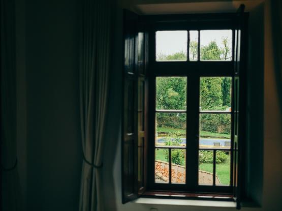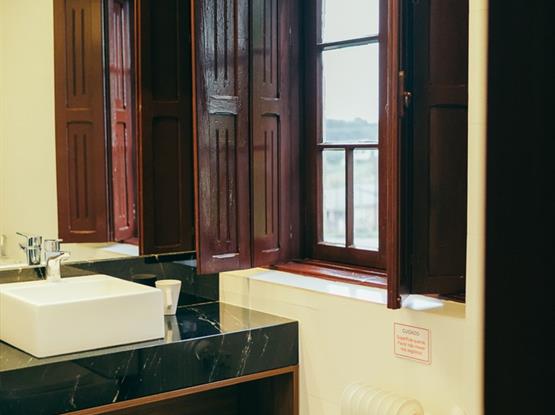 Conta com uma vista para o pátio e jardim da pousada;
