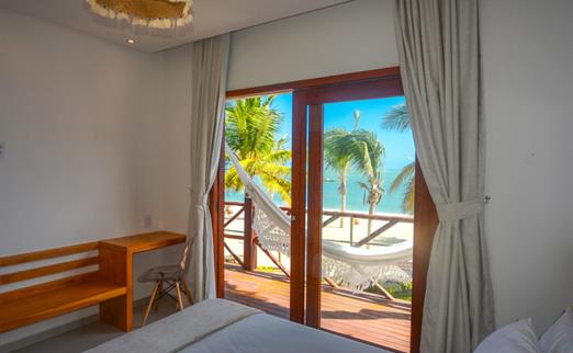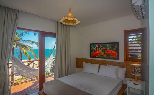 O Cavalo Marinho é o maior e mais sofisticado apartamento, no andar superior, com 03 suítes e vista espetacular do mar em todos os ambientes. Sala ampla de Tv, cozinha gourmet com cooktop, estendendo-se em uma linda varanda em deck de madeira, ideal para contemplar o pôr do sol e os kitesurfistas. Com alguns passos, você desce ao gramado, pisando na areia da Praia. A hospedagem inspira ficar no conforto de casa, desfrutar da cozinha gourmet com cooktoop, forno embutido, micro-ondas, sanduicheira e cervejeira. Recebemos até 08 pessoas confortavelmente, 02 na suíte máster (01 cama casal), 02 na suíte single (02 camas...