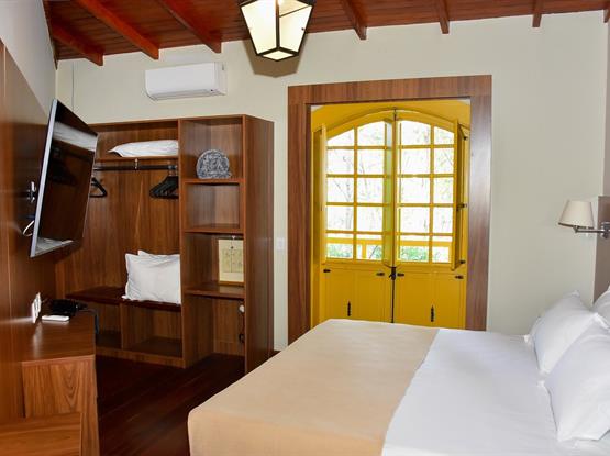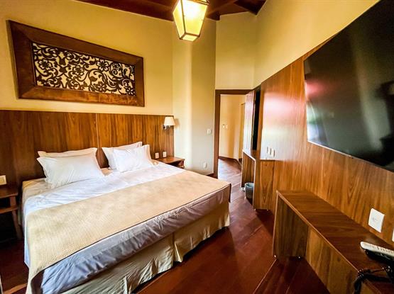 Nossos apartamentos são destinados para dois ou mais hóspedes, portanto, as diárias individuais terão o preço de um apartamento duplo. É proibido fumar nas acomodações, inclusive na sacada. O não cumprimento custará uma taxa de R$800,00 para desodorização. A estada inclui pensão completa, com café da manhã, almoço, chá da tarde e jantar. A diária se inicia com o chá da tarde no dia do check in e finaliza com o almoço no dia do check out. O Hotel fornece a cortesia de uma criança entre 00 e 12 anos (idade que deverá estar até a data do check-out da hospedagem), nos apartamentos que acomodam, desde que acompanhada de dois adultos pagantes. Os apartamentos Classic, Royal e Villa Casal possuem capacidade máxima para apenas duas pessoas, portanto não é possível reservar para dois adultos e uma criança. Localização do apartamento sujeito a disponibilidade do Hotel. O almoço no dia do check in não está incluso, tendo o valor extra de R$ 100,00* por adulto, R$ 50,00* para crianças entre 06 e 12 anos e cortesia para crianças de 00 a 05 anos. (Valor Válido para check in em 2024). O check-in é a partir das 15:00 horas, mas é possível chegar sem custos extras a partir das 13:00 horas e desfrutar das áreas comuns. O check-out deve ser feito até às 12:00 horas, com liberação do apartamento. O almoço da saída está incluso, e é possível permanecer nas áreas comuns até as 15:00 horas. DOCUMENTO DE IDENTIFICAÇÃO: No ato do check in o hóspede deverá apresentar documento de identidade original com foto. Menores de idade que não possuam documento de identidade deverão apresentar Certidão de Nascimento original ou cópia autenticada. No check in será feita cópia simples do documento de todos que estarão hospedados para verificarmos as informações. MENORES DE IDADE: O Hotel Serraverde não hospeda e não permite a permanência em suas dependências de menores de idade desacompanhado dos pais ou responsável ou sem autorização escrita destes, com firma reconhecida, ou da autoridade judiciária. 0s pais ou responsáveis respondem por eventuais danos causados por menores ao patrimônio do Hotel ou de seus hóspedes. Na hipótese acima discriminada o documento de autorização deve ser o original, apresentando-o juntamente com a certidão de nascimento do menor no ato do check in. O Hotel não se responsabiliza por impedimentos legais que impossibilitem a viagem do menor, aplicando-se, nestes casos, as multas previstas nas regras de cancelamento e "No Show". RESPONSABILIDADES E REGRAS: O Hotel Serraverde não será responsável pelo não cumprimento das obrigações contratadas em casos de caso fortuito ou força maior, conforme artigo 1.058 do Código Civil Brasileiro. O Hotel não se responsabiliza por sumiço de bagagens, objetos perdidos ou danificados dentro do Hotel, em transportes ou excursões, assim como furto de joias e valores não confinados ao cofre do Hotel. Animais de estimação são proibidos dentro do Hotel, acarretando a perda do pacote, valores pagos e retirada do cliente caso algum animal seja levado ao estabelecimento. Além disso, será cobrada uma taxa de R$ 800,00, para desinfecção do apartamento. É proibido o uso de caixas de som e equipamentos de áudio nas áreas comuns do Hotel. Não é permitida a entrada no Hotel com comidas e bebidas. Caso o hóspede seja notificado com algum item externo nas áreas comuns, uma taxa de R$ 5.000,00 será cobrada. Além disso, será cobrada uma taxa de rolha de R$ 70,00 por cada bebida. Dividimos a participação na recreação em três faixas etárias: 04 a 06 anos, 07 a 12 anos e adultos. As crianças devem integrar o grupo correspondente à sua idade durante a estadia. Crianças com necessidades especiais também podem participar, mas devem estar acompanhadas pelos pais. Para garantir a privacidade de nossos hóspedes, solicitamos que, caso não deseje a limpeza do apartamento, coloque a placa de "Não Perturbe" na maçaneta externa da porta de entrada. Se a placa de "Não Perturbe" não for colocada, entenderemos que a limpeza é necessária.