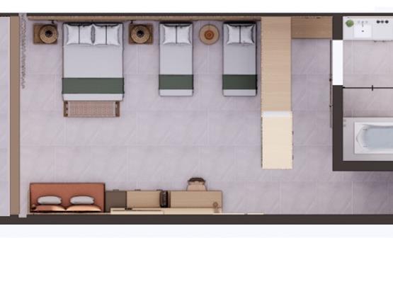Ocup.max.: 5 Pessoas Área: 44 m2 Vista: Vista para o Lago Cama: Queen