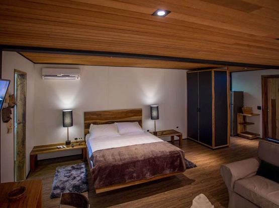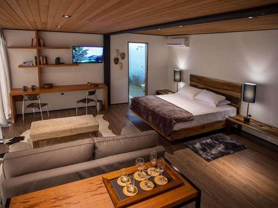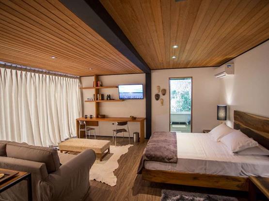 O quarto conta com TV 37', amenities Loccitane, Nespresso, chaleira elétrica, banheira de imersão, internet via fibra óptica, frigobar, ar-condicionado, deck externo de madeira, cortinas automatizadas e uma super vista para o nascer do sol.