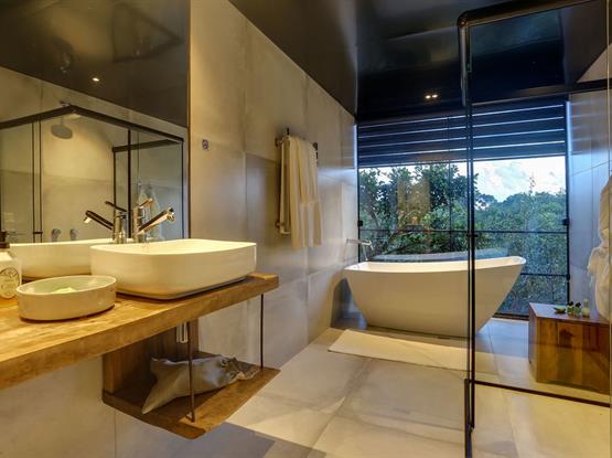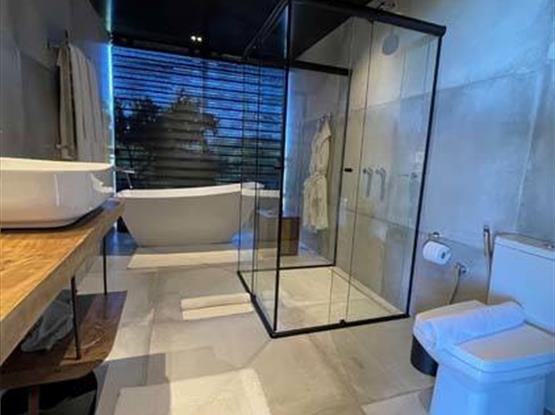 0 chalé é equipado com roupões, pantufas, chaleira elétrica, Nespresso, frigobar, secador de cabelo, amenities Loccitante, banheira de imersão, cama queen-size,...