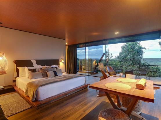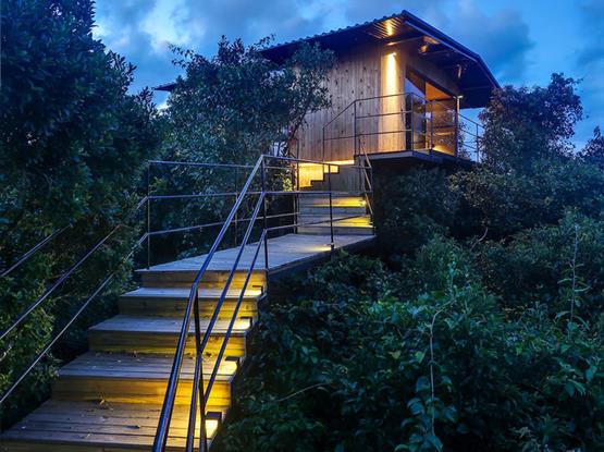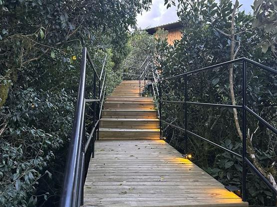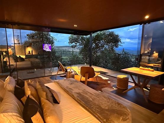 O chalé Zygmunt Bauman tem a vista mais maravilhosa da vida para o nascer do sol e a Serra do mar. Uma experiência verdadeiramente singular. Arquitetura Bruno Zaitter, interiores Sandra Vidolin.