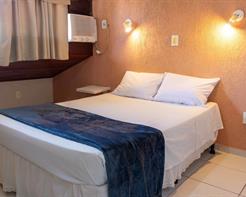 Máx.Quarto com ar-condicionado, inclui TV de tela plana a cabo, frigobar e banheiro privativo com chuveiro aquecido.