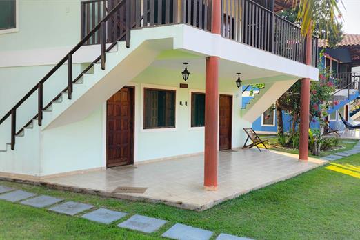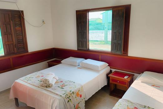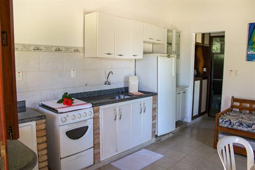 Sala com TV LED 32” FullHD com pacote básico SKY (consulte opções de outros pacotes) e 02 sofás camas, ventilador de teto, com cozinha conjugada equipada com fogão de 4 bocas, geladeira de 01 porta e utensílios (panelas, talheres, pratos e equipamentos para churrasco) 01 banheiro com box, 01 quarto com cama casal e 01 cama de solteiro, cômoda e ar condicionado. Varanda com jogo de mesa e rede. Acomoda até 5 pessoas.