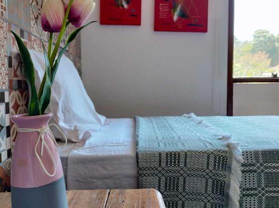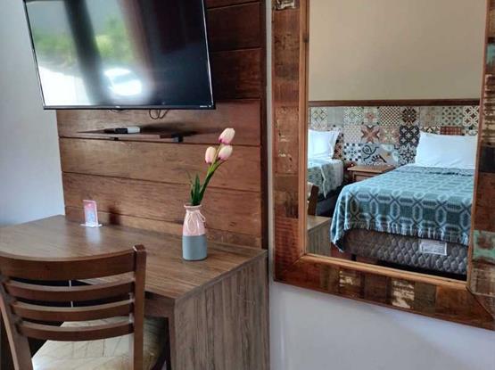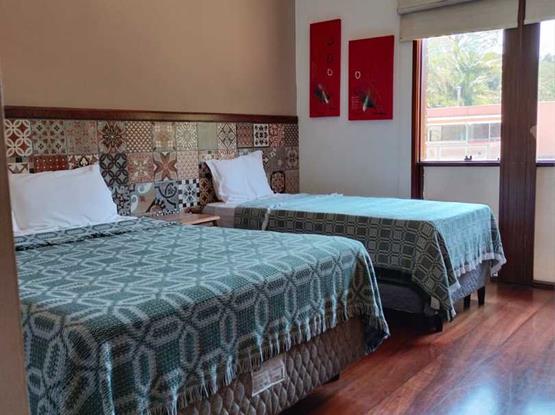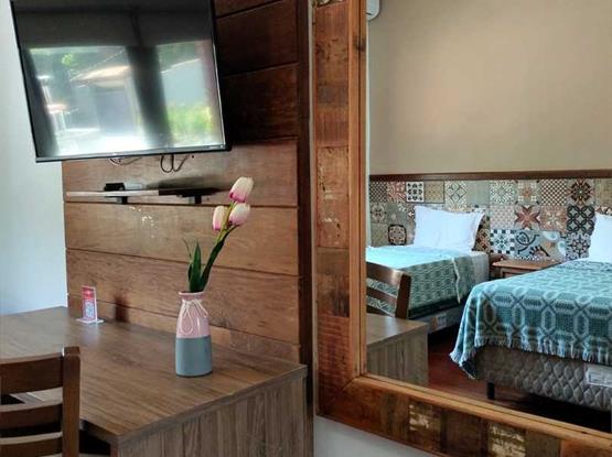 Suite com vista para a piscina e jardim, triplo, hidromassagem, TV Smart com todos os canais abertos, ar condicionado, Wi-fi, escrivania, kit...
