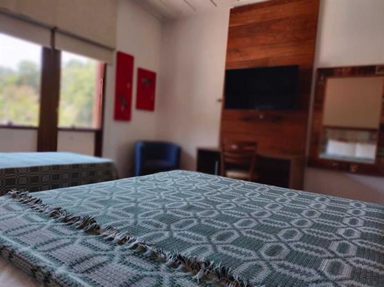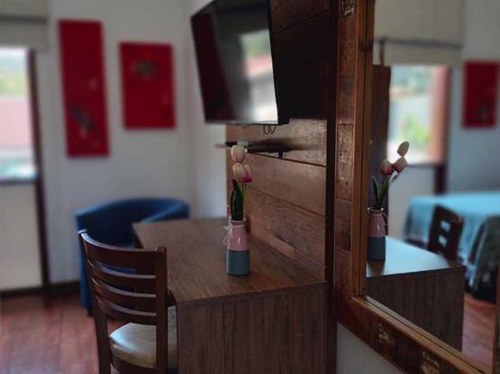 Suite com vista para a piscina e jardim, triplo, hidromassagem, TV Smart com todos os canais abertos, ar condicionado, Wi-fi, escrivania, kit amenities, Toalhas.