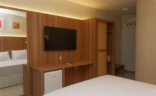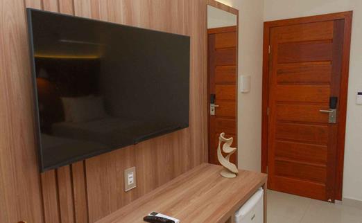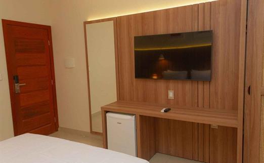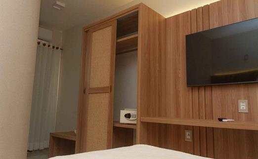 Desfrute da exclusividade da nossa requintada Suíte Standard. Com 21,27 m², este retiro luxuoso é perfeito para hóspedes exigentes em busca de uma experiência distinta. Aconchegue-se na imponente cama queen-size, garantindo noites de sono revigorantes. Desfrute do entretenimento premium na TV de 43 polegadas e mantenha-se conectado com o roteador individual. Sua segurança é prioridade, com o cofre digital para objetos de valor. Saboreie bebidas e petiscos do frigobar meticulosamente abastecido. No espaçoso banheiro, encontre um espelho articulado e iluminação em LED. Aprecie a vista na varanda privativa e descanse com lençóis de 230...