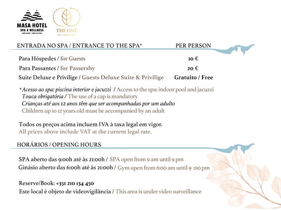 SPA: Esta tipologia de Quarto não dá acesso gratuito ao SPA.
