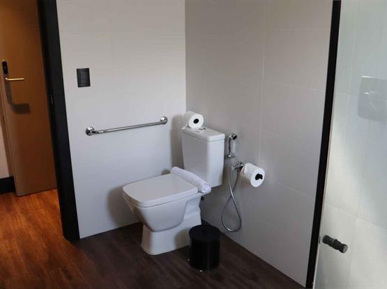 Ao entrar na suíte, os hóspedes são recebidos por um ambiente luxuoso e sofisticado, projetado para atender às necessidades dos hóspedes com mobilidade reduzida.