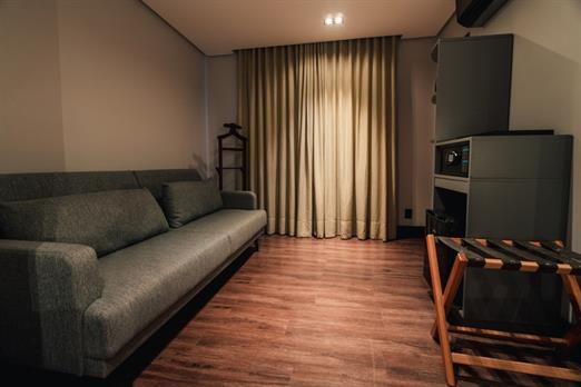 Acomoda até 2 pessoas em cama de casal King Size e 1 crianças no sofá cama;