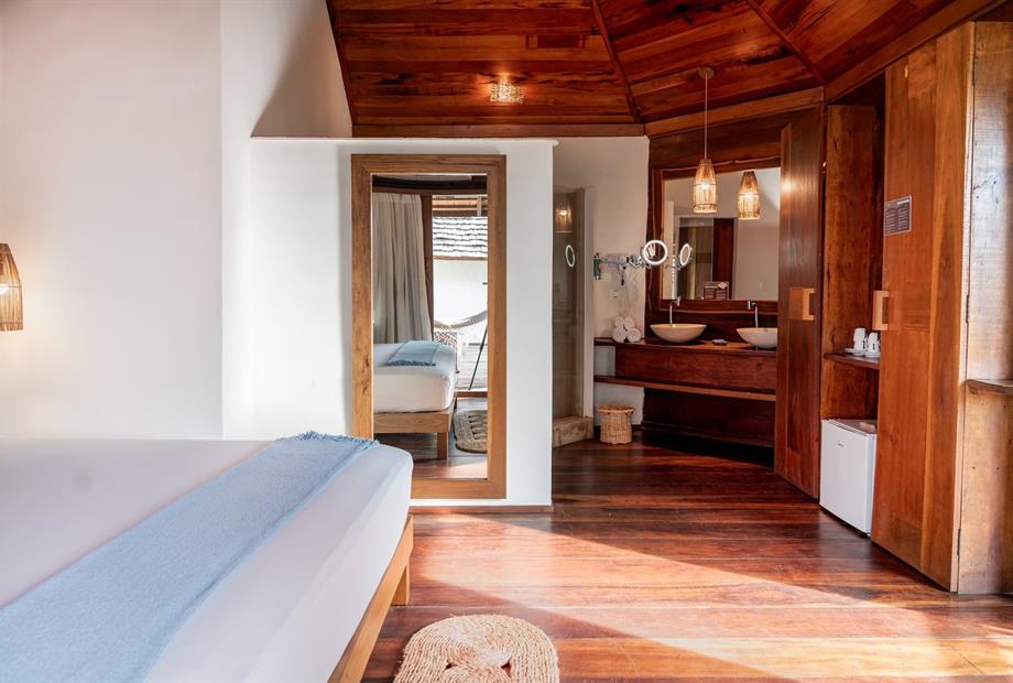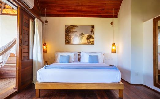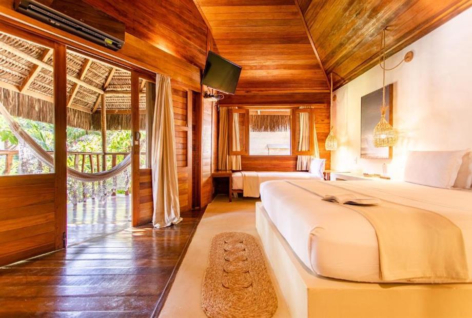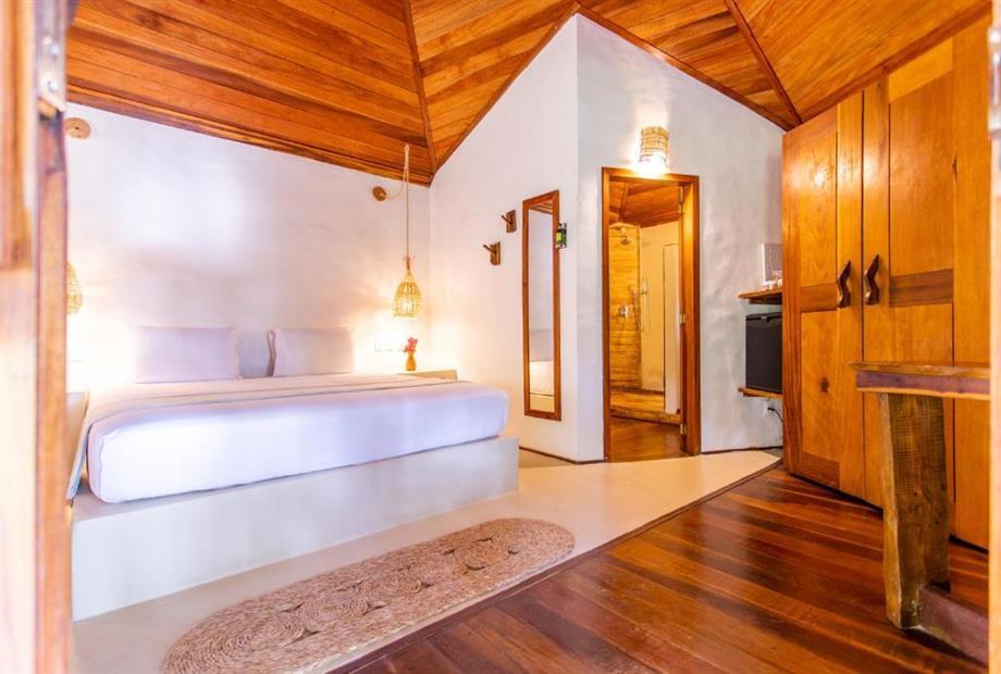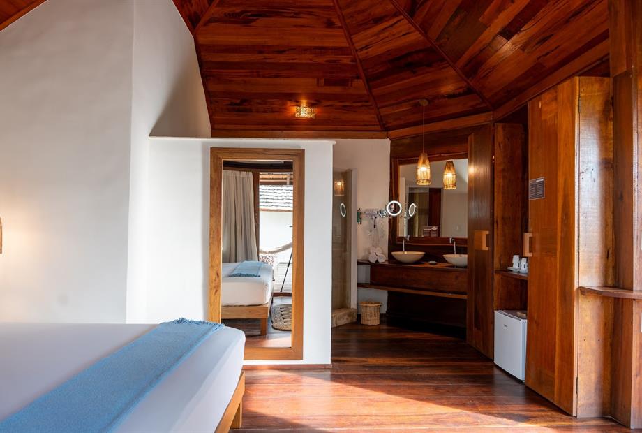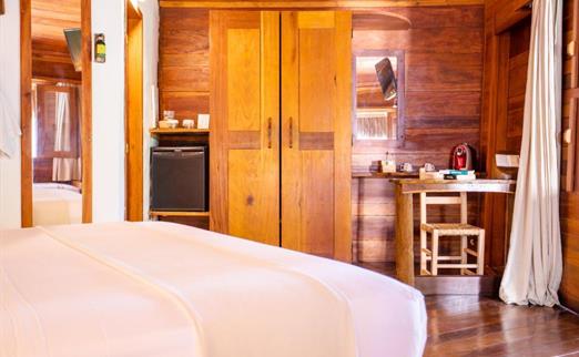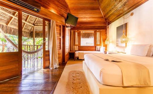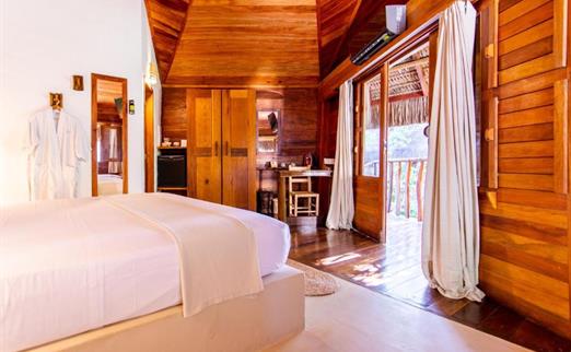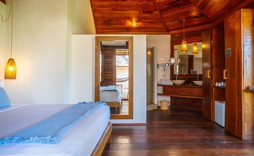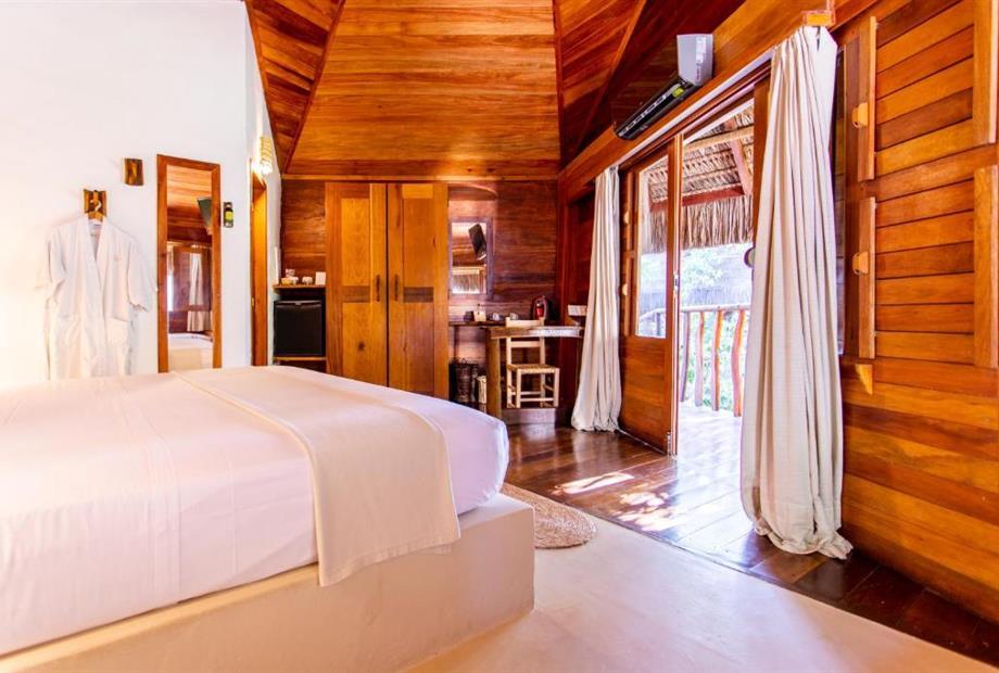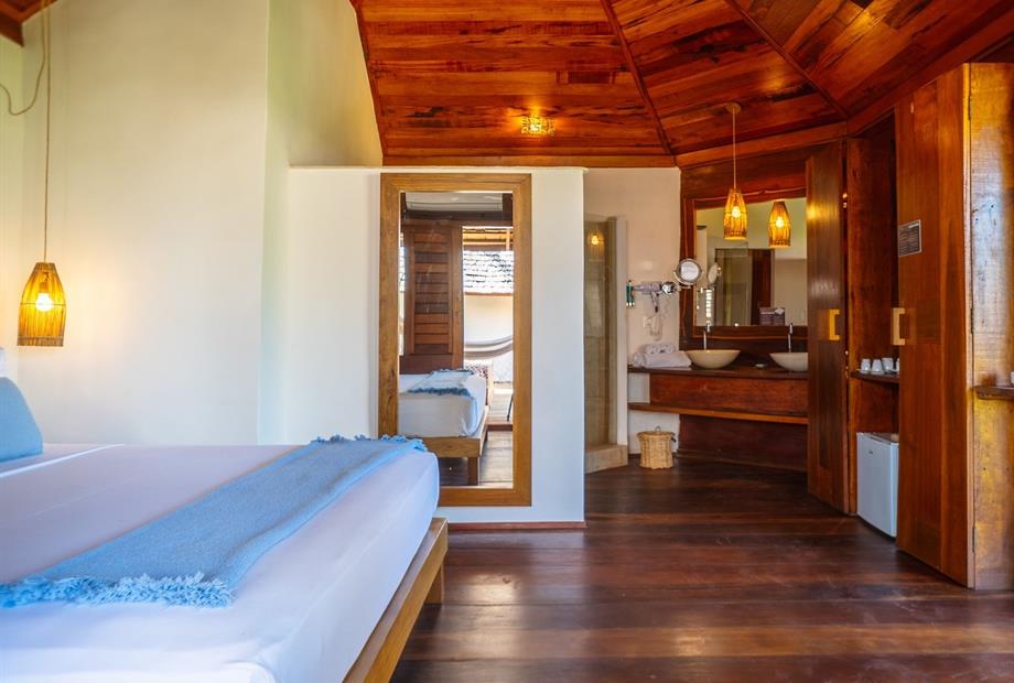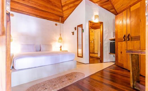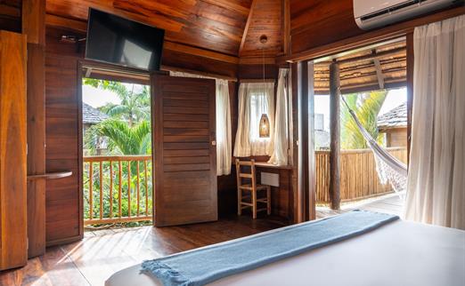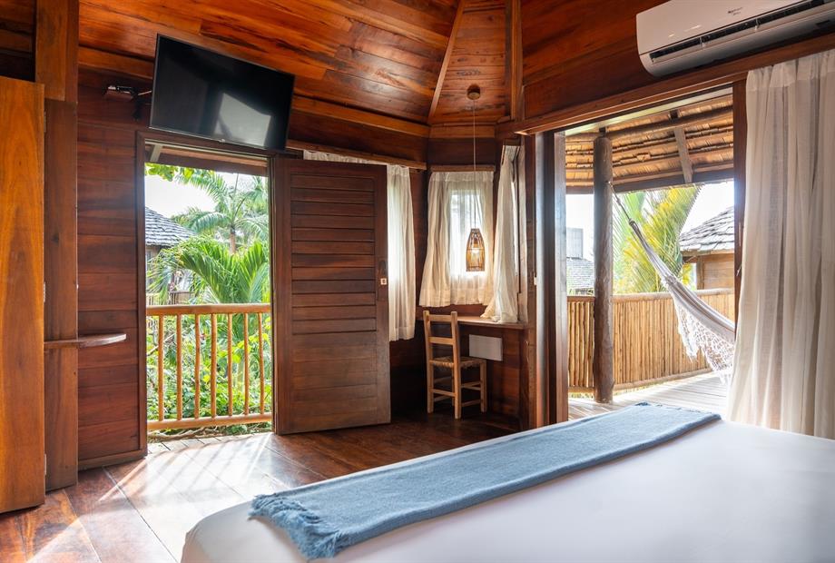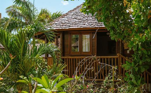 O Bangalô possui madeira de reflorestamento em suas paredes e o tradicional telhado de piaçava. Em seu interior uma decoração moderna e rústica equilibra o luxo e a natureza. Essa acomodação tem capacidade máxima para dois hóspedes em cama de casal.