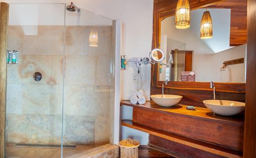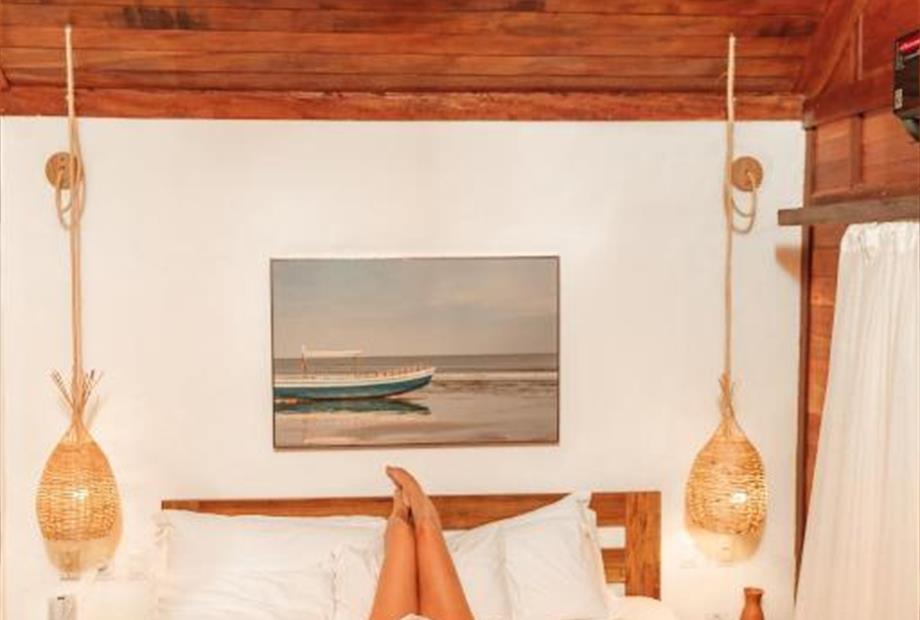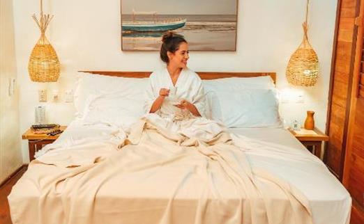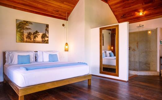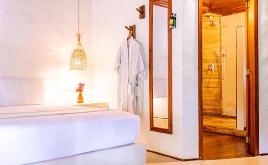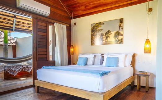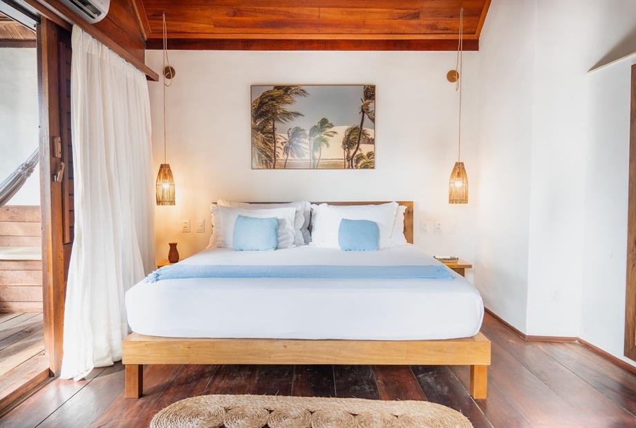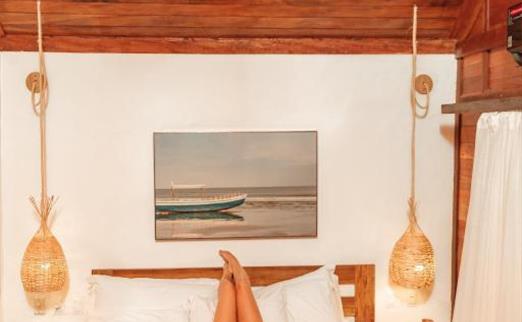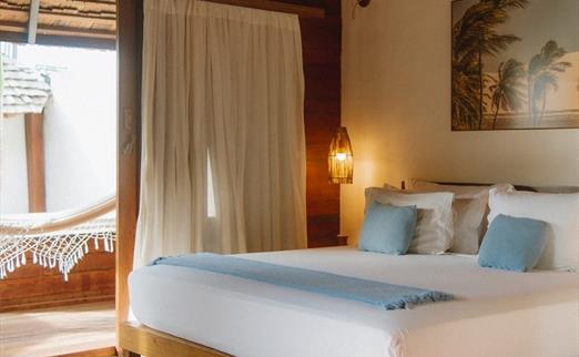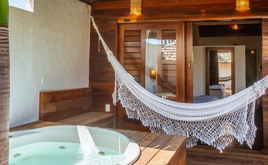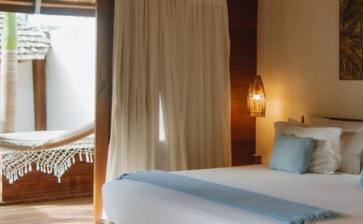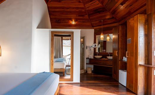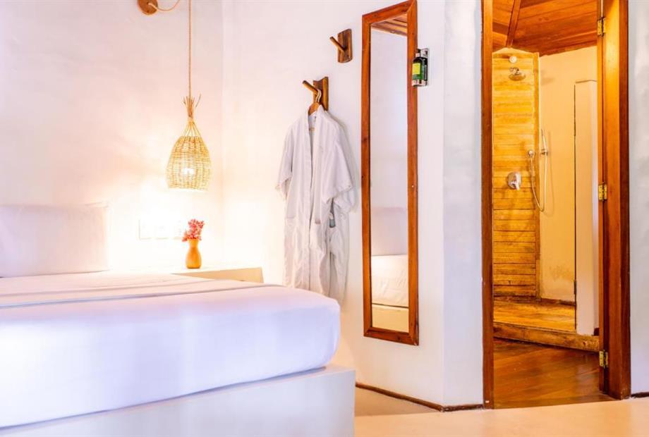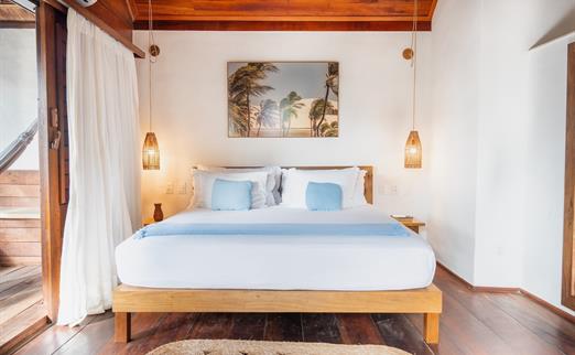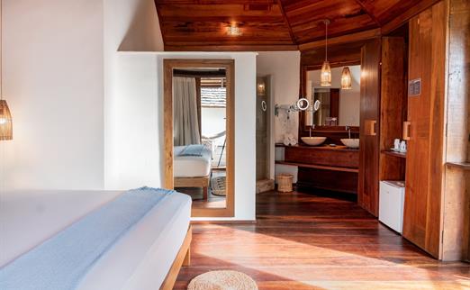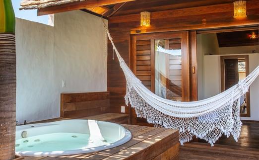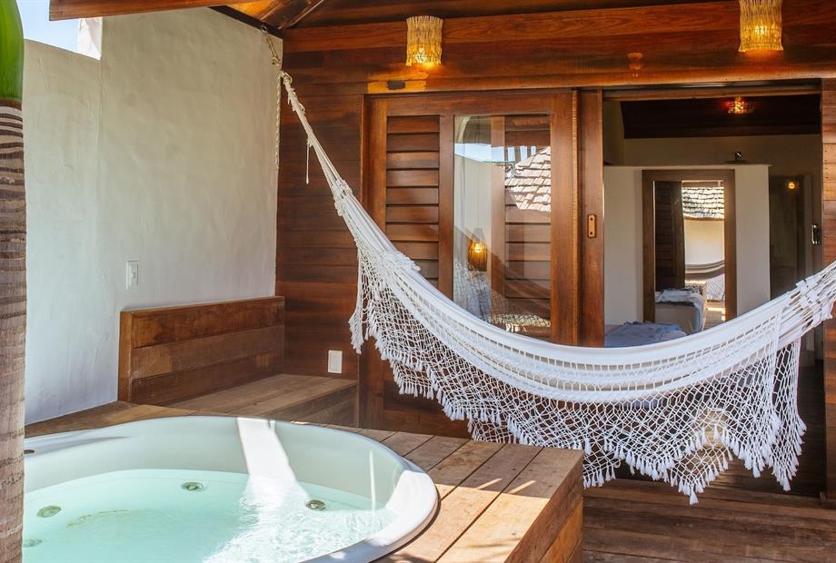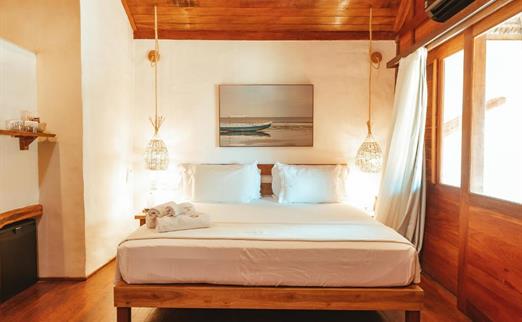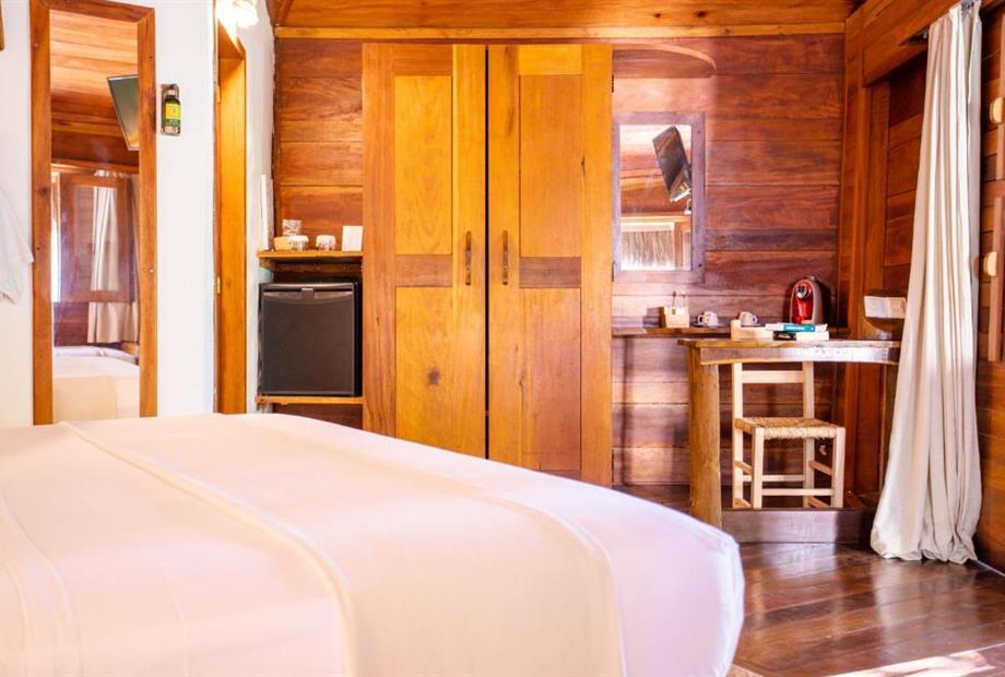 O Bangalô possui madeira de reflorestamento em suas paredes e o tradicional telhado de piaçava. Em seu interior uma decoração moderna e rústica equilibra o luxo e a natureza. Essa acomodação tem capacidade máxima para dois hóspedes em cama de casal.