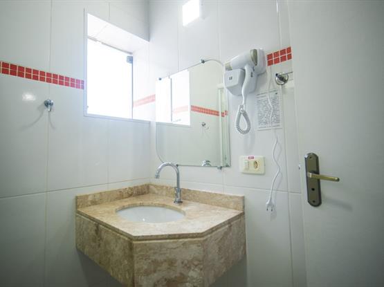 Frigobar abastecido e secador de cabelo à disposição
