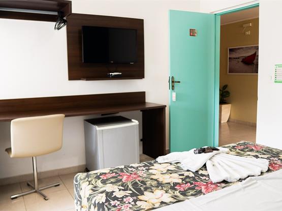 Descubra o equilíbrio perfeito entre conforto e praticidade na Suíte Standard Plus Casal do Hotel do Sol. Ideal para casais em busca de uma estadia tranquila, ela conta com: