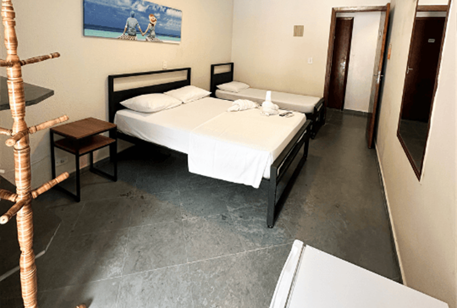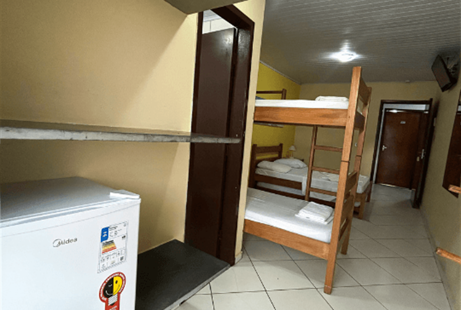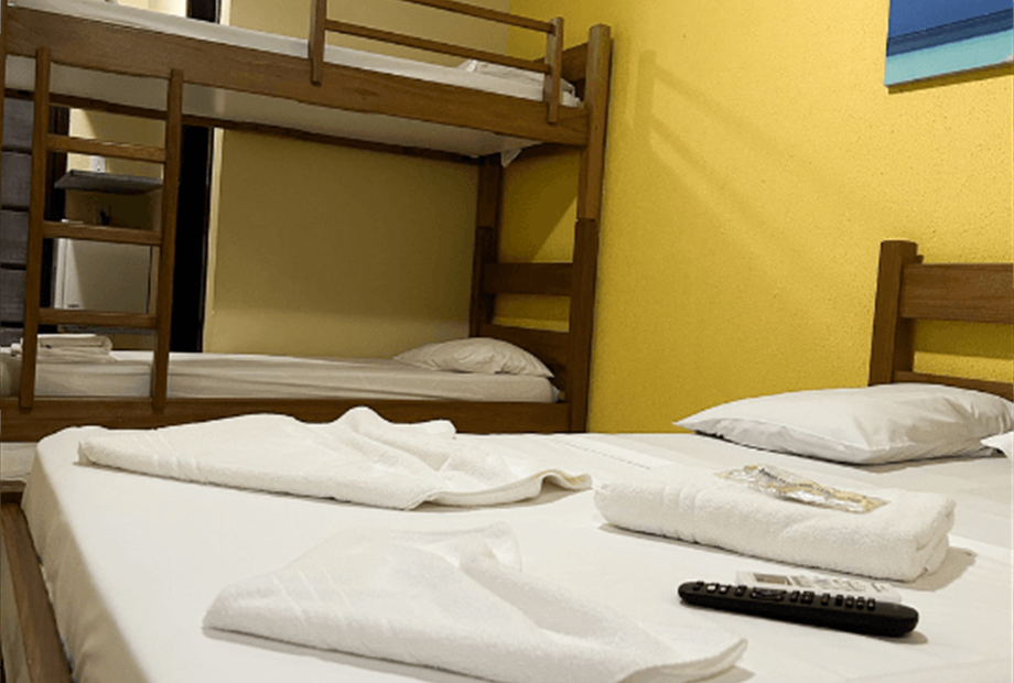 As demais categorias atendem famílias, com opções duplas, triplas ou quádruplas, todas com banheiro privativo, ar-condicionado e frigobar.