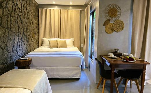 Bem-vindo ao nosso Paraíso. Nosso espaço acaba de ser reformado nos mais altos padrões para lhe proporcionar estilo e paz cercado pela natureza no coração de Morro de São Paulo. Apesar de estar perto de tudo, voce se hospedara em meio ao silencio e a natureza. Muito perto de cafés e restaurantes, lojas e todo o agito de Morro. Prepare-se para tomar o seu cafe da manha ou desfrutar de um refresco ao pôr do sol ao som do canto dos pássaros. Relaxe neste espaço calmo e elegante. Neste apto você terá opção de cama de casal + cama de solteiro, assim acomodamos ate 3 pessoas confortavelmente. Você terá sua cozinha com equipamentos de co...