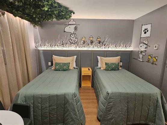 Conforto, diversão e praticidade se encontram em nossos apartamentos temáticos da turma do Snoopy, cuidadosamente decorados para proporcionar uma experiência única!