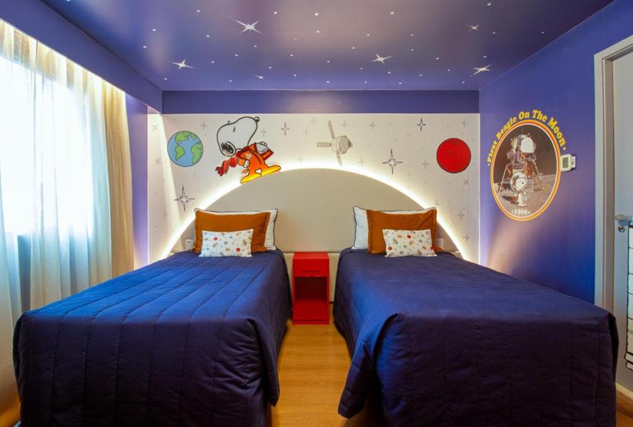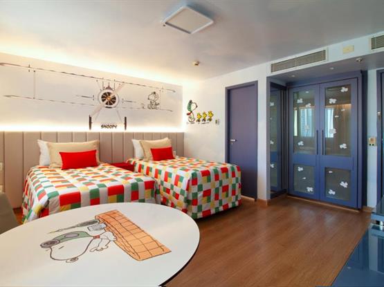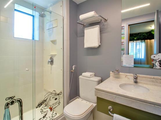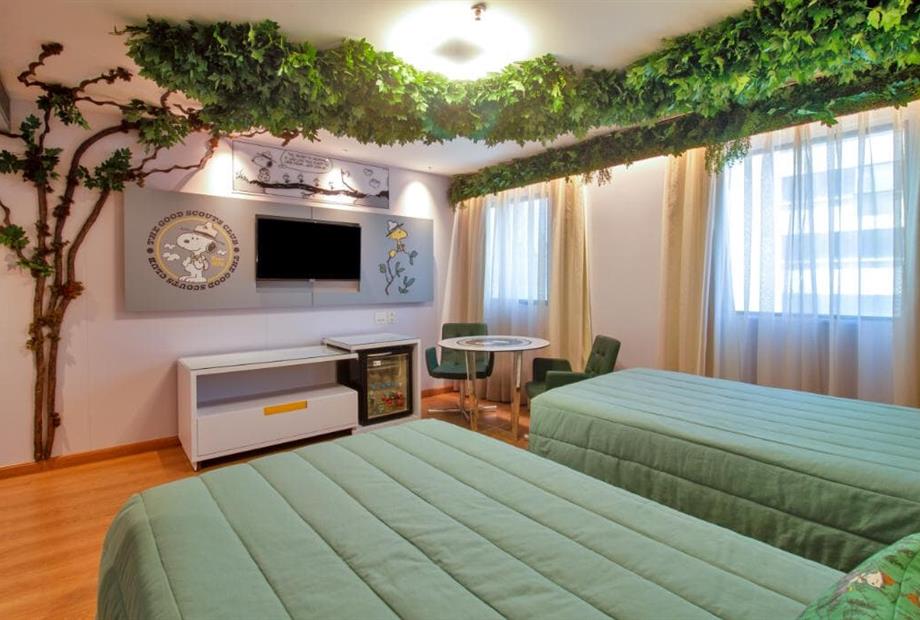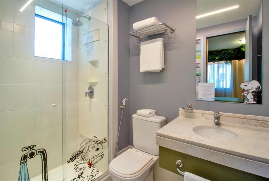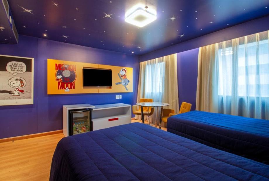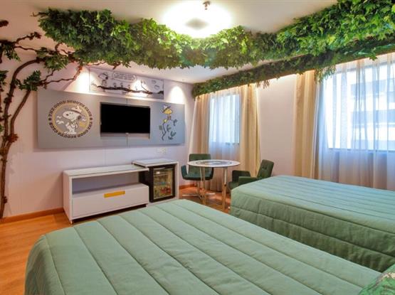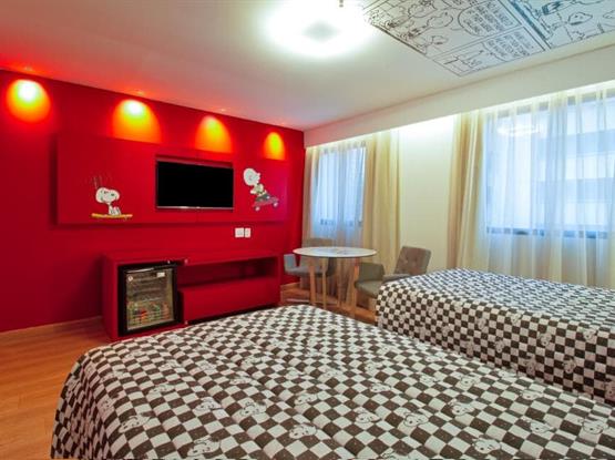 Os apartamentos contam com duas camas de solteiro, um banheiro privativo, mesa com 2 lugares, frigobar e são 100% para não fumantes. As camas possuem a roupa de cama temáticas e personalizadas, garantindo noites ainda mais confortáveis. Para sua comodidade, o ambiente é equipado com ar-condicionado, Wi-Fi de alta velocidade gratuito e TV de tela plana com canais a cabo.