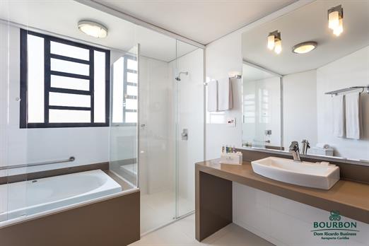 Possui ar-condicionado com controle individual, TV tela plana 55" smart e por assinatura, minibar, secador de cabelos. Espelho de aumento, cofre digital, espelho, luz de leitura individual, guarda-roupas, banheira de hidromassagem individual, cardápio de travesseiros, máquina de café Nespresso, poltrona, e room service. É possível montagem de berço para criança até 2 anos de idade.