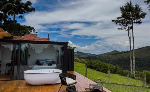 Relaxe neste lugar único e tranquilo com uma vista espetacular do vale e das montanhas Você jamais vai esquecer da sua estadia neste lugar romântico e marcante. O Container Mountain View possui toda estrutura necessária para passar dias inesquecíveis, sem falar da Vista de tirar o fôlego para o Vale e as Montanhas. Container muito bem equipado com equipamentos e utensílios de primeira para que o hospede tenha um experiência incrível e inesquecível. Desfrutar da banheira de imersão ou rede fixa com essa vista não tem preço. Wifi de ótima qualidade com espaço exclusivo para Home office, tv smart 55 polegadas, cozinha completa para que...