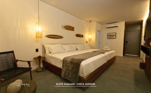 Com 40m² de espaço interno, a suíte oferece uma estadia sofisticada e acolhedora, cercada pela tranquilidade da natureza. Seu design contemporâneo e elegante garante o equilíbrio perfeito entre conforto e privacidade. Conforto & Comodidades Duas camas king size, proporcionando amplo espaço e máximo conforto. Ar-condicionado, para um ambiente sempre agradável. TV de tela plana, para momentos de entretenimento. Frigobar e cafeteira, para sua comodidade. Guarda-roupa, garantindo organização e praticidade. A Suíte MAKANI – Vista Jardim é ideal para quem busca tranquilidade e sofisticação em meio à natureza. Reserve agora e desfrute de...