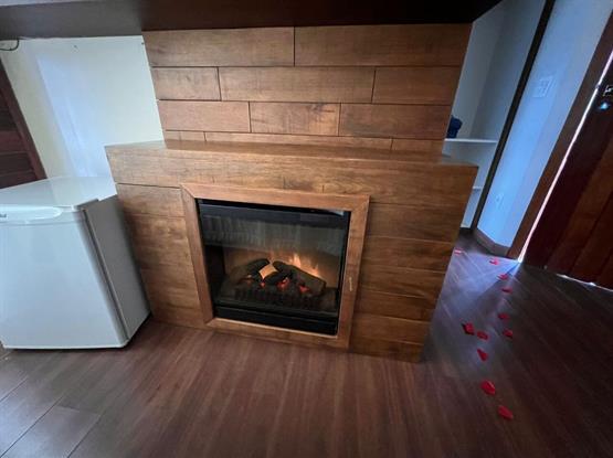 Relaxe em frente à lareira elétrica, que adiciona um toque de aconchego e romance ao ambiente, perfeito para noites aconchegantes. A TV de tela plana oferece entretenimento sob demanda, enquanto o ar-condicionado garante uma temperatura agradável durante todo o ano.
