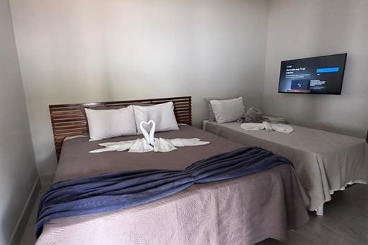 Para o seu entretenimento, desfrute da TV de tela plana, perfeita para relaxar com seus programas favoritos antes de dormir. O ar-condicionado garante uma temperatura agradável durante todo o ano, enquanto o frigobar mantém suas bebidas e lanches sempre à mão.