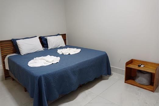 Ao entrar, você será recebido por um espaço cuidadosamente projetado, decorado com tons suaves e aconchegantes, criando uma sensação de calma desde o primeiro momento. A espaçosa cama de casal é o ponto focal, oferecendo um descanso tranquilo após um dia repleto de aventuras.