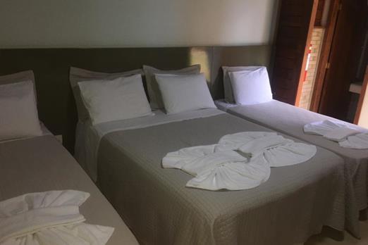 Com uma cama de casal e três camas de solteiro, este quarto oferece flexibilidade para amigos ou famílias que viajam juntos. Simples e confortável, é o refúgio perfeito para uma estadia relaxante e sem complicações.