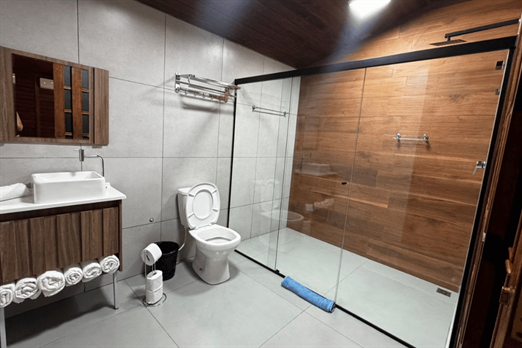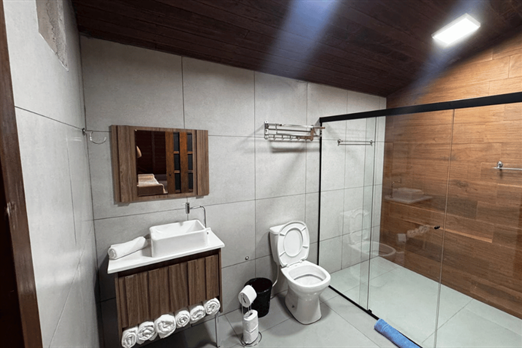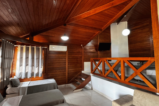 Com uma cama de casal e quatro camas de solteiro, este quarto oferece flexibilidade para amigos ou famílias que viajam juntos. Simples e confortável, é o refúgio perfeito para uma estadia relaxante e sem complicações.