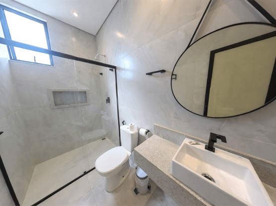 A suíte dispõe de ar-condicionado, TV de tela plana, frigobar, bancada de apoio, Wi-Fi e banheiro amplo com box em vidro e acabamento moderno, oferecendo praticidade e conforto em todos os detalhes. Cada elemento foi pensado para garantir uma experiência tranquila e agradável, seja para uma viagem em família, um final de semana especial ou dias de relaxamento.