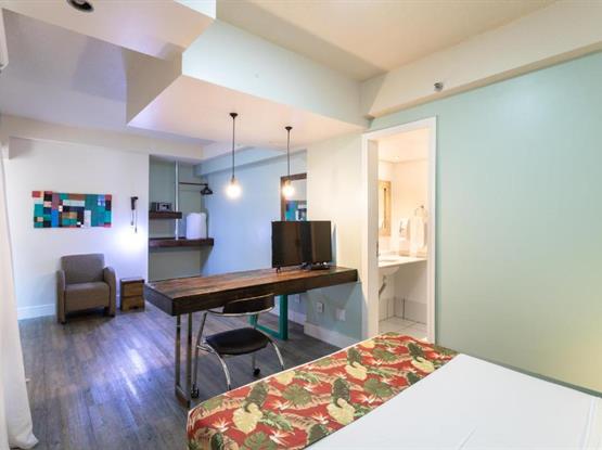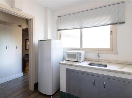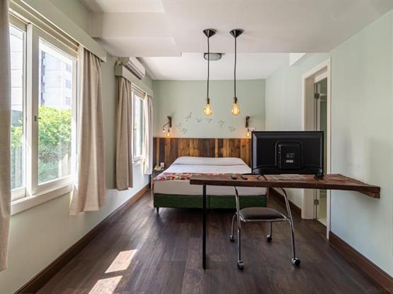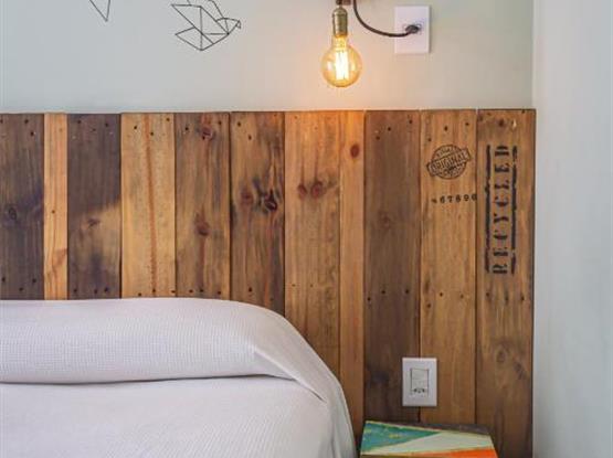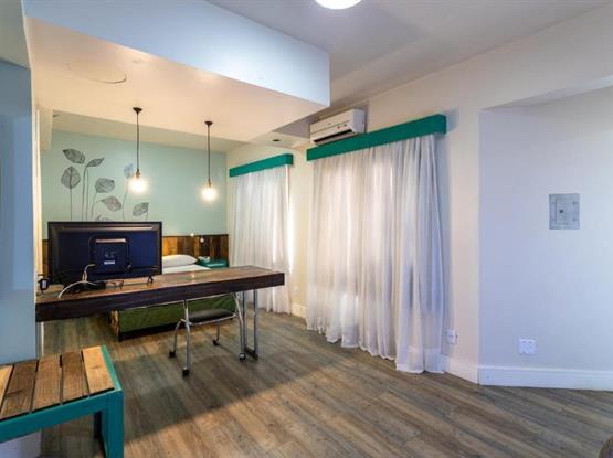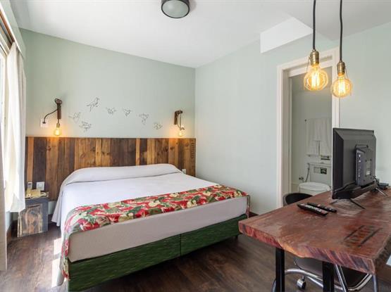 Todo o necessário com uma dose extra de charme e design. Um amplo apartamento de 33m² cama de casal e banheiro privativo. Equipado com smart TV , ar condicionado split, microondas, frigobar, cofre, secador de cabelos entre outros. Com mesa de trabalho e/ou estudos e um cantinho especial para leitura com uma confortável poltrona. A decoração conta com itens feitos de madeira de reflorestamento e/ou de demolição.