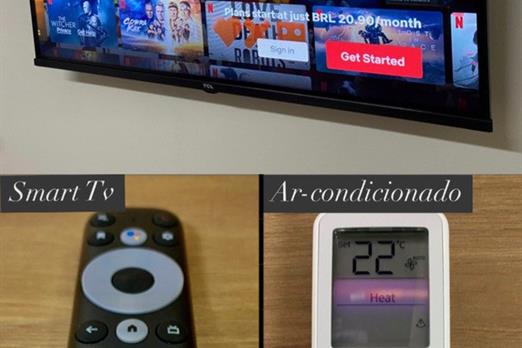 Nosso quarto para até três pessoas, ideal para uma estadia confortável e relaxante. Este quarto dispõe de uma confortável cama de casal e uma cama de solteiro, garantindo uma noite tranquila de sono para todos os hóspedes. Além disso, o quarto está equipado com uma televisão para o seu entretenimento, uma mesa de apoio para maior comodidade e conveniência, e possui ar condicionado para o seu conforto durante toda a estadia. Este quarto não possui banheiro privativo, no entanto, nossa propriedade oferece banheiros compartilhados para sua conveniência. Além disso, você terá acesso a áreas comuns, como sala de estar e área de jantar, onde pode relaxar e desfrutar de momentos tranquilos. Também oferecemos uma cozinha totalmente equipada para sua conveniência e uma garagem disponível para uso.