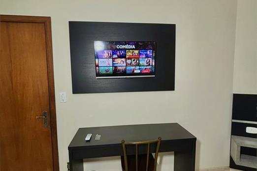 Nosso quarto para até três pessoas, ideal para uma estadia confortável e relaxante. Este quarto dispõe de uma confortável cama de casal e uma cama de solteiro, garantindo uma noite tranquila de sono para todos os hóspedes. Além disso, o quarto está equipado com uma televisão para o seu entretenimento, uma mesa de apoio para maior comodidade e conveniência, e possui ar condicionado para o seu confo...