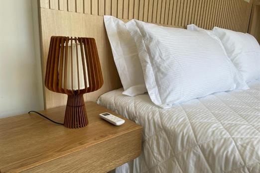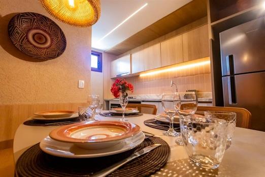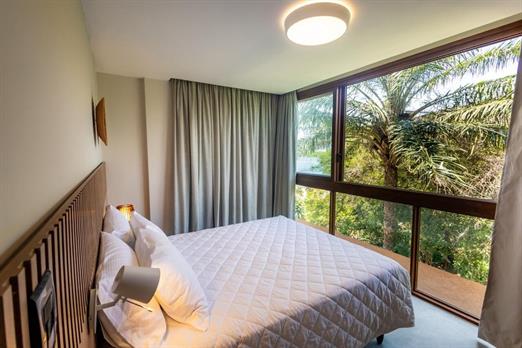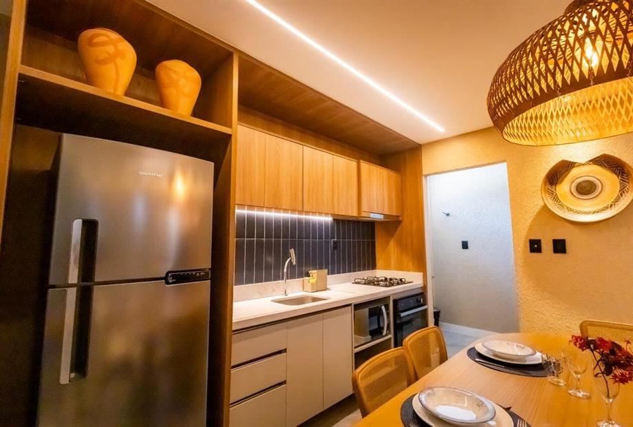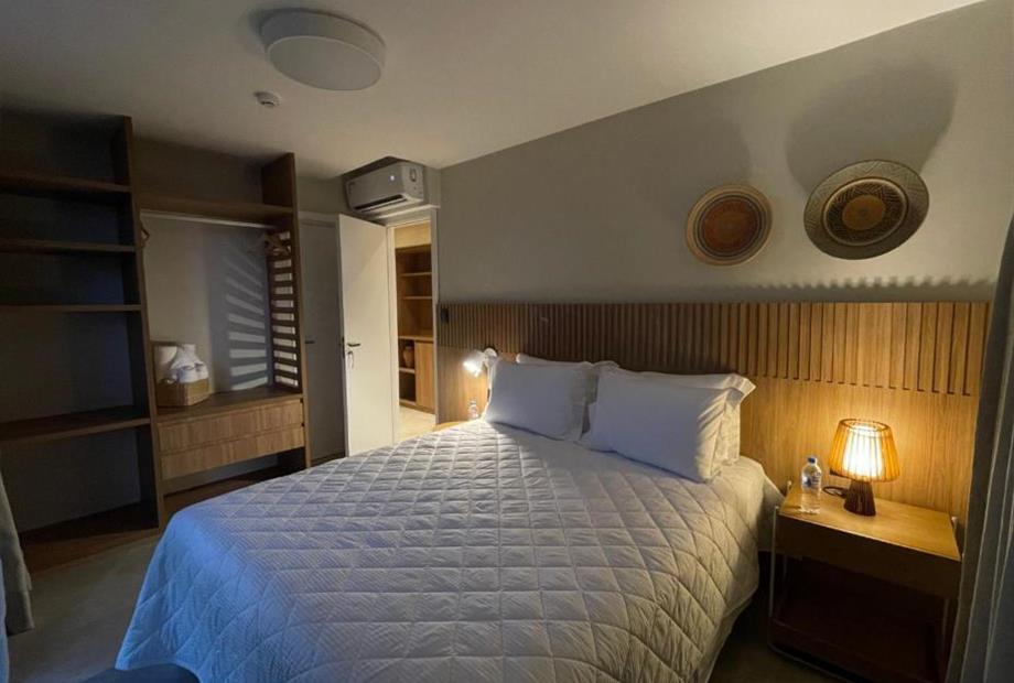 Todos os apartamentos dispõem de uma ampla sala climatizada com decoração requintada, TV de 55 polegadas com acesso a streaming e uma incrível vista para o Lago de Guarajuba e a Mata Atlântica.
